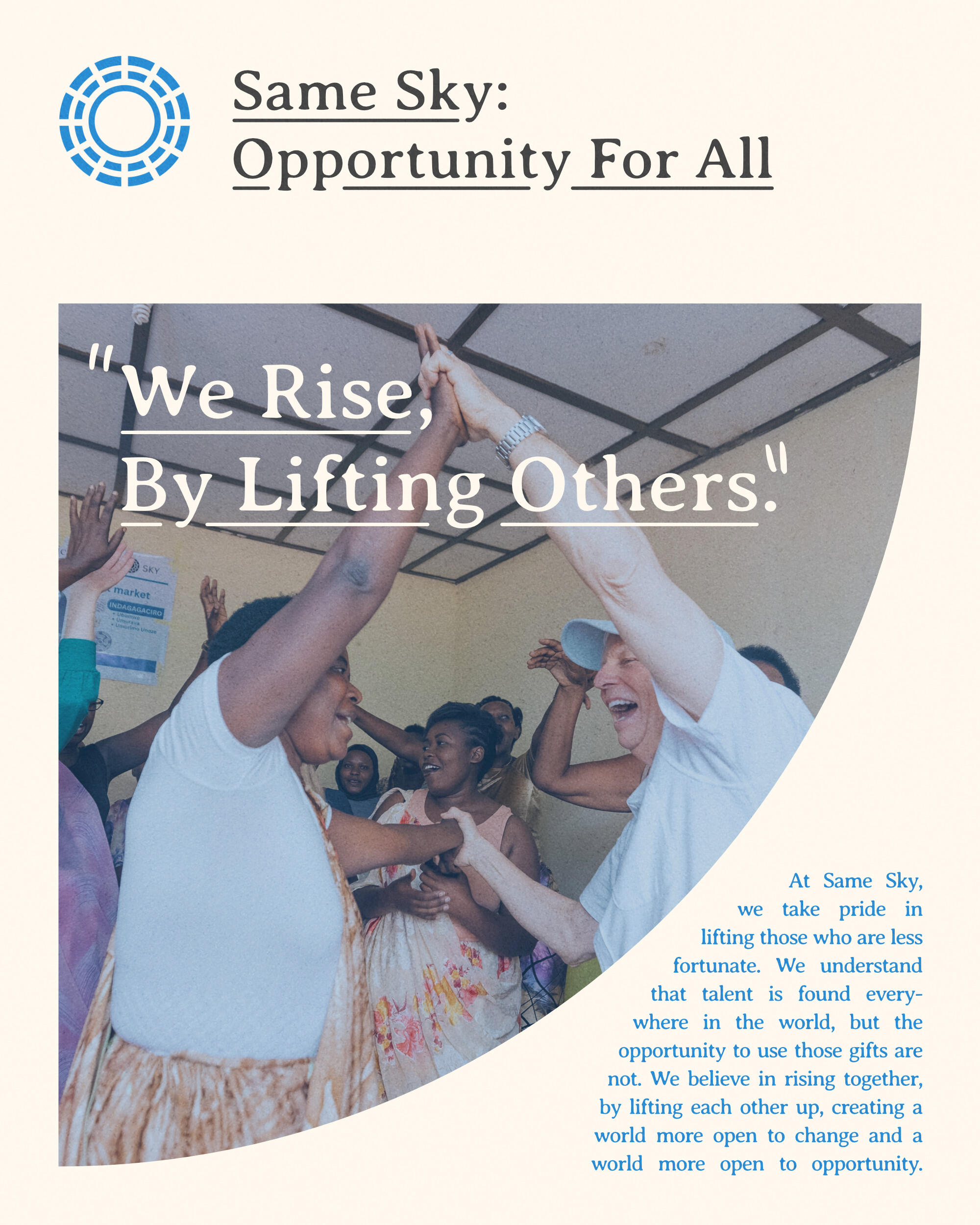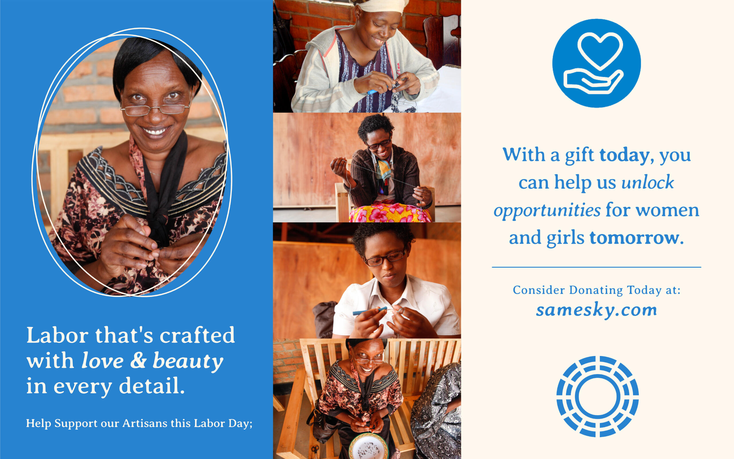 Same Sky Foundation; a Non-Profit, based out of the New York City area. Helping empower women and incarcerated individuals worldwide.Through job training, education, and economic opportunity. Same Sky was founded on the belief in giving a “hand-up, not a hand-out,” Same Sky provides artisan training in Rwanda, STEM scholarships for girls, and microgrants in Jersey City. By connecting conscious consumerism with social impact, every purchase helps create pathways to independence and dignity - uniting women under the same sky.