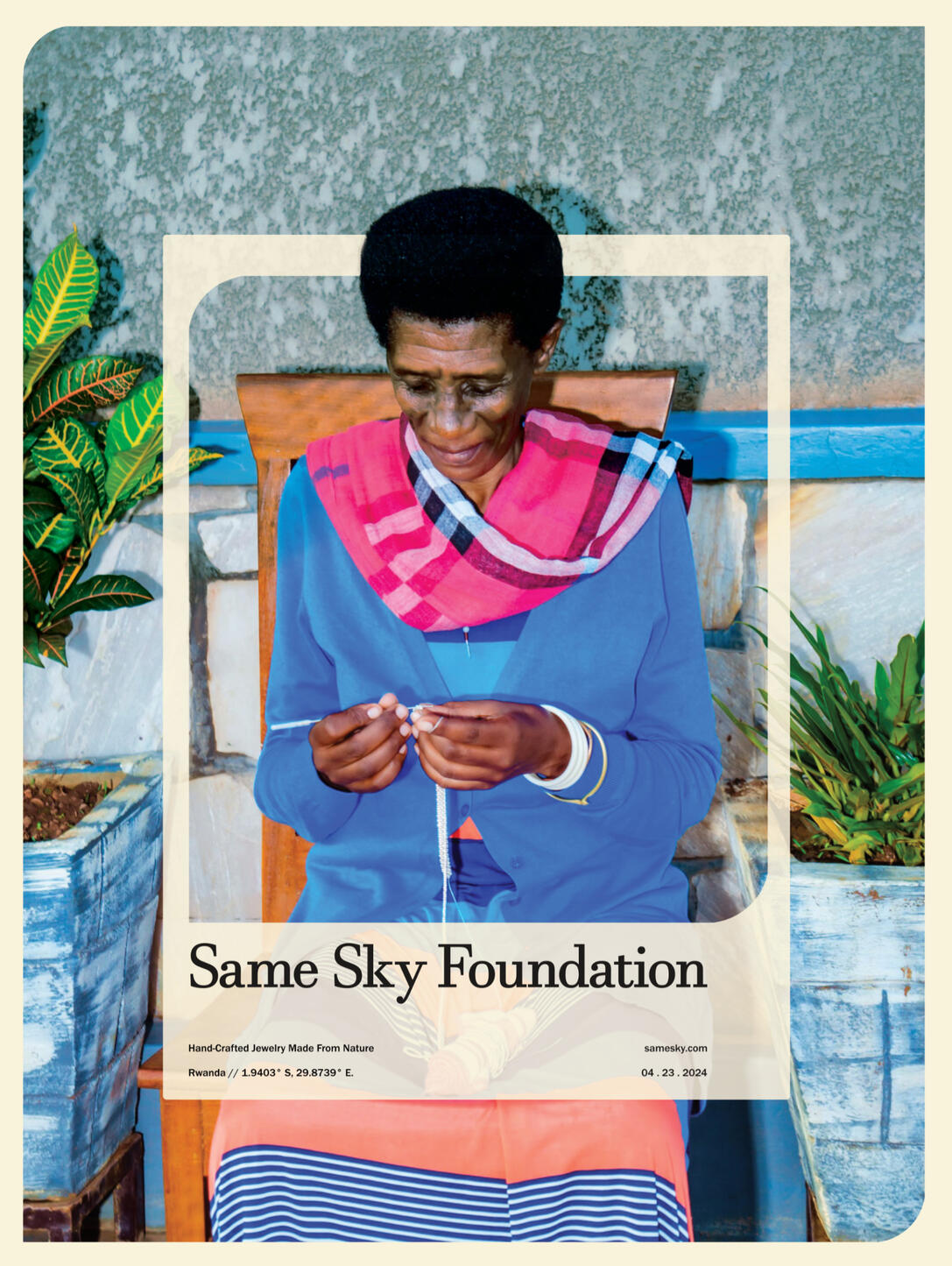 Same Sky Foundation; a Non-Profit, based out of the New York City area. Helping empower women and incarcerated individuals worldwide.Through job training, education, and economic opportunity. Same Sky was founded on the belief in giving a “hand-up, not a hand-out,” Same Sky provides artisan training in Rwanda, STEM scholarships for girls, and microgrants in Jersey City. By connecting conscious consumerism with social impact, every purchase helps create pathways to independence and dignity - uniting women under the same sky.